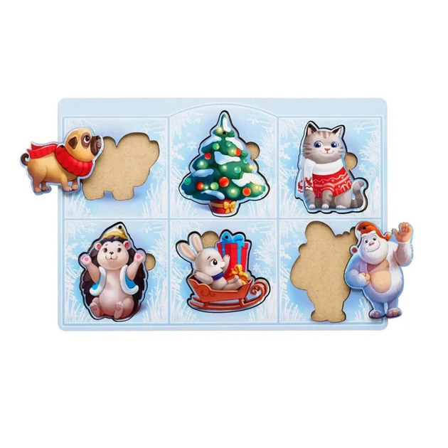 Розвиваючий пазл-вкладиш "Новорічний -2" (ПСФ014) PSF014, 6 картинок
