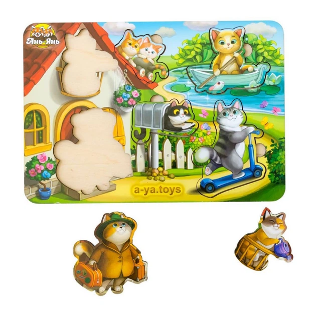 Дерев'яний пазл-вкладиш "Котики - 1" Ubumblebees (ПСД140) PSD140 з будиночком