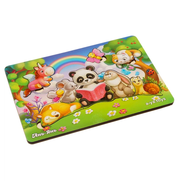 Дерев'яний пазл-вкладиш "Звірі на лісовій галявині" Ubumblebees (ПСД177) PSD177, 9 деталей
