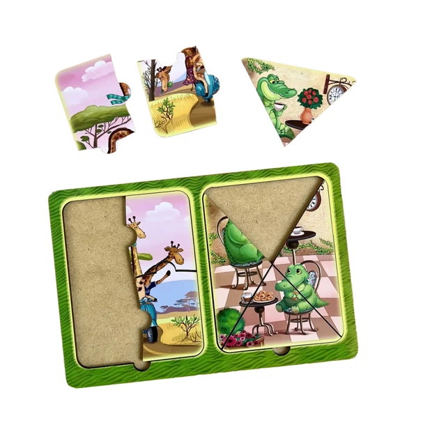 Дерев'яний пазл-вкладиш "Жирафи та крокодили" Ubumblebees (ПСД185) PSD185 в рамці