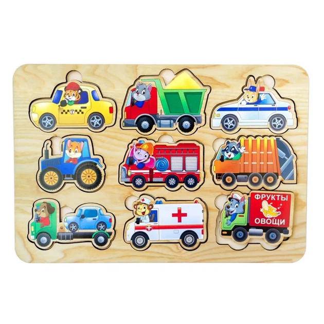 Дерев'яний пазл-вкладиш "Транспорт" Ubumblebees (ПСД130) PSD130, 9 елементів