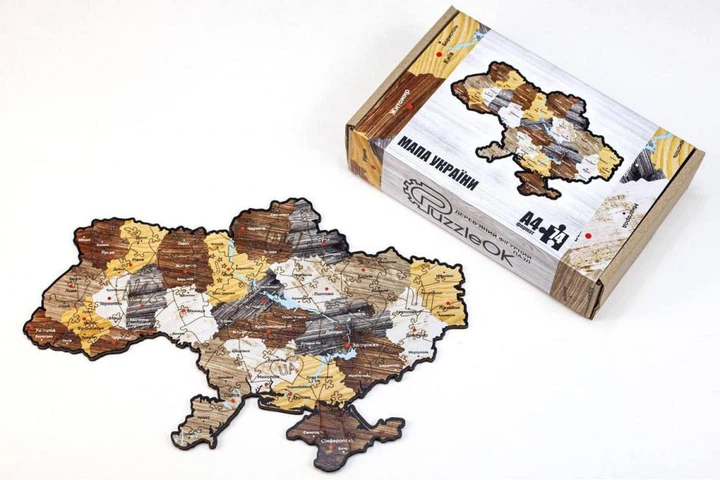 Дерев'яні пазли PuzzleOK Карта України 27,7*40,5 см, в картонному пакуванні, 122 деталі