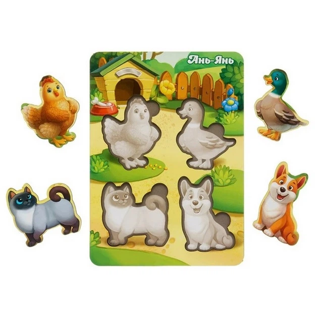 Дерев'яний пазл-вкладиш "Домашні тварини-2" Ubumblebees (ПСФ054) PSF054 фон із підказкою