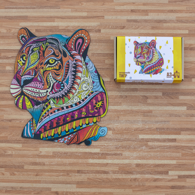 Фігурний деревяний пазл PuzzleOK "Загадковий Тигр" (PuzA3-00726)