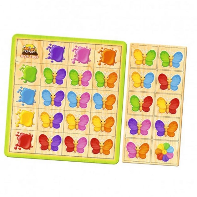 Дерев'яний пазл-сортер "Метелики" Вивчення кольорів 21х23 см Ubumblebees Різнокольоровий (2000002464471)