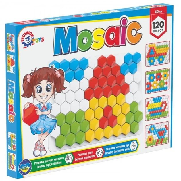 Мозаїка для дітей ТехноК 120 елементів шестикутна 40 мм 2216