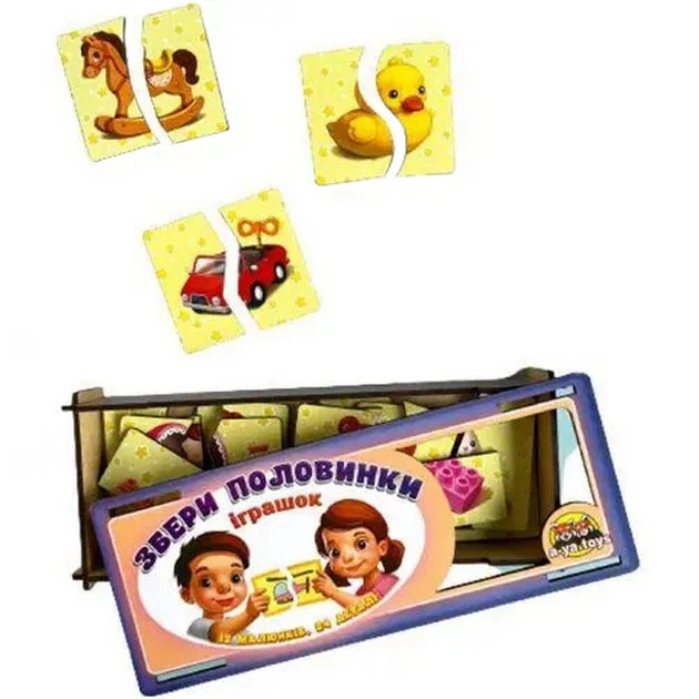 Дитяча розвиваюча дерев'яна іграшка UBUMBLEBEES PSF070 "Іграшки" 12 картинок-половинок