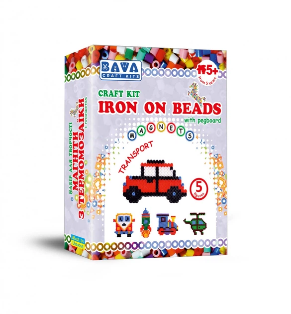 Магніти з термомозаїки Розумник Транспорт набір для творчості для дітей від 5 років яскраві фігурки магнітики (556064)