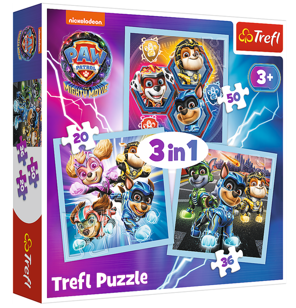Пазли 3 в 1 Могутня сила щенят. Щенячий патруль. Mighty Pups Power (20,36,50 ел.) 34869 (Trefl)