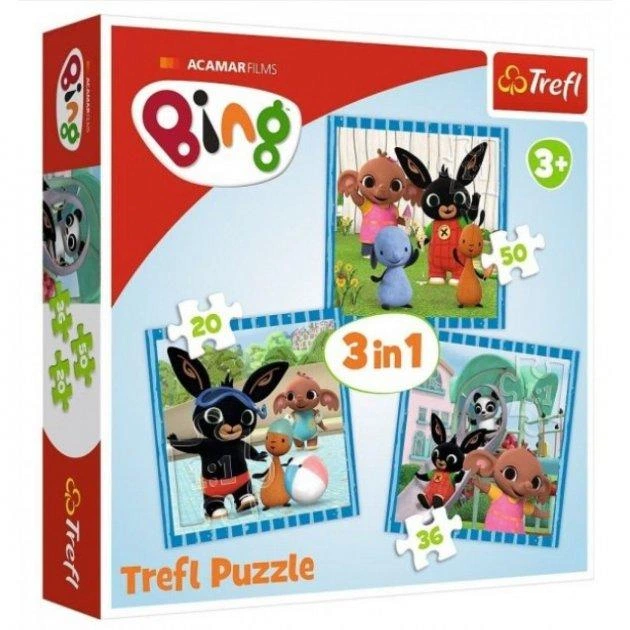 Пазли 3 в 1 Кролик Бінґ. Забави з друзями. Acamar Films Bing (20,36,50 ел.) 34851 (Trefl)