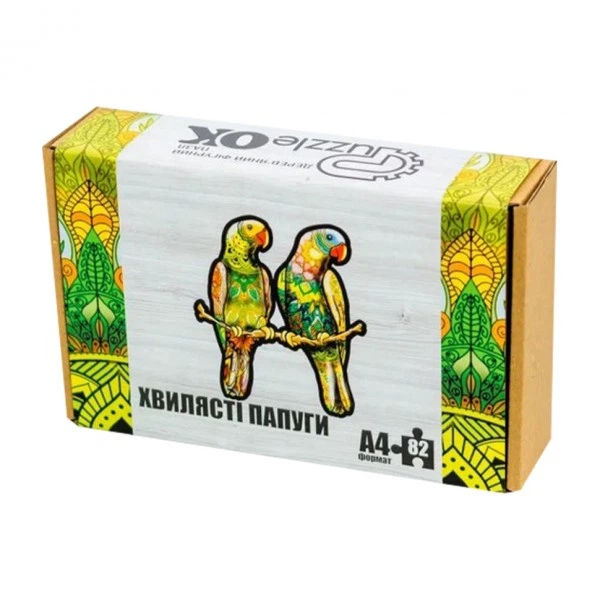 Фігурний дерев'яний пазл A4 Хвилясті папуги PuzA4-01212, 82 деталі