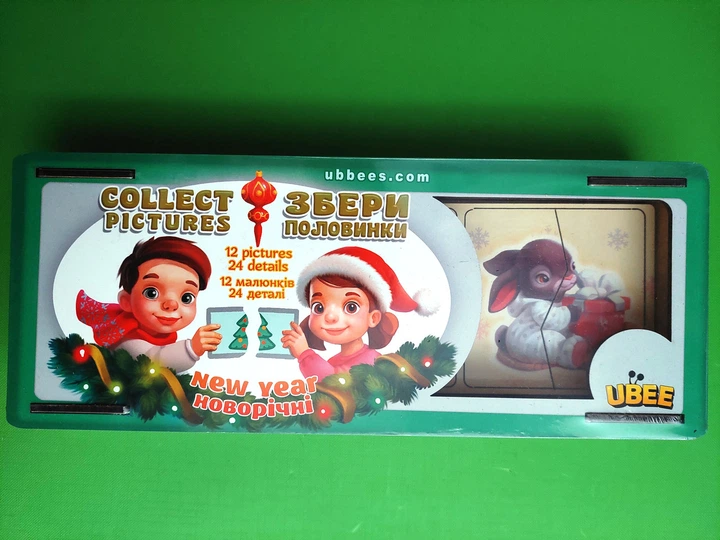 Дерев'яні пазли. Новорічні половинки в коробці (ПСД238). UBumblebees