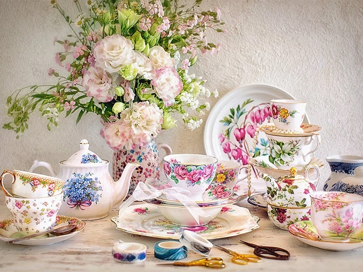 Пазли Castorland "Натюрморт з порцеляною і квітами" (B-53384)