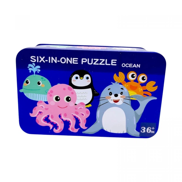 Пазли дитячі Океан, деревяні, 6 пазлів, пронумеровані, в боксі MIC C73878