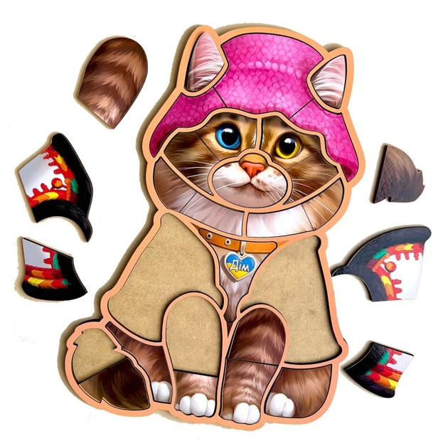 Дерев'яний контурний пазл "Український котик" Ubumblebees (ПСФ136) PSF136 контурний