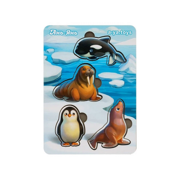 Дерев'яний пазл-вкладиш "Тварини Арктики та Антарктики" Ubumblebees (ПСФ061) PSF061 фон із підказкою