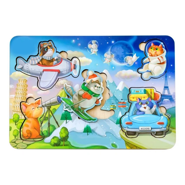 Дерев'яний пазл-вкладиш "Котики - 2" Ubumblebees (ПСД143) PSD143 з космонавтом