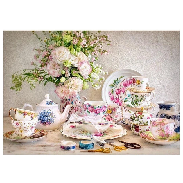 Пазли Castorland 500 елементів "Натюрморт з порцеляною і квітами" (B-53384)