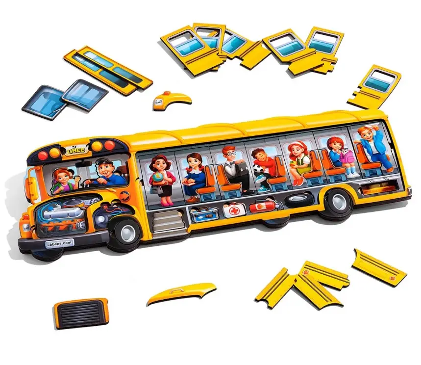 Дерев'яний двошаровий пазл-вкладиш Шкільний автобус Ubee ПСД270