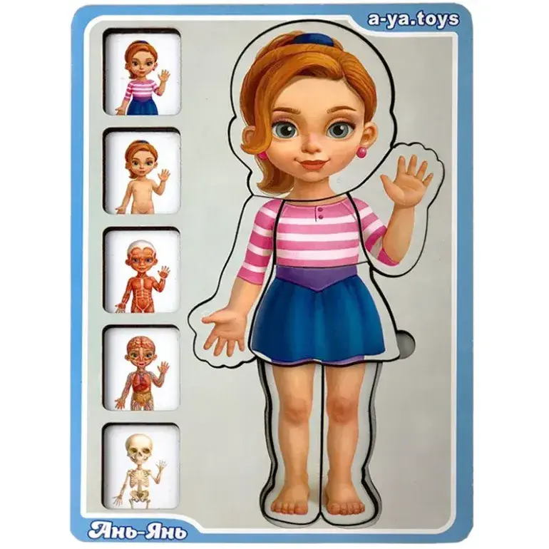 Дерев'яний пазл-вкладиш Ubumblebees Анатомія людини - дівчинка будова тіла (ПСФ025) PSF025