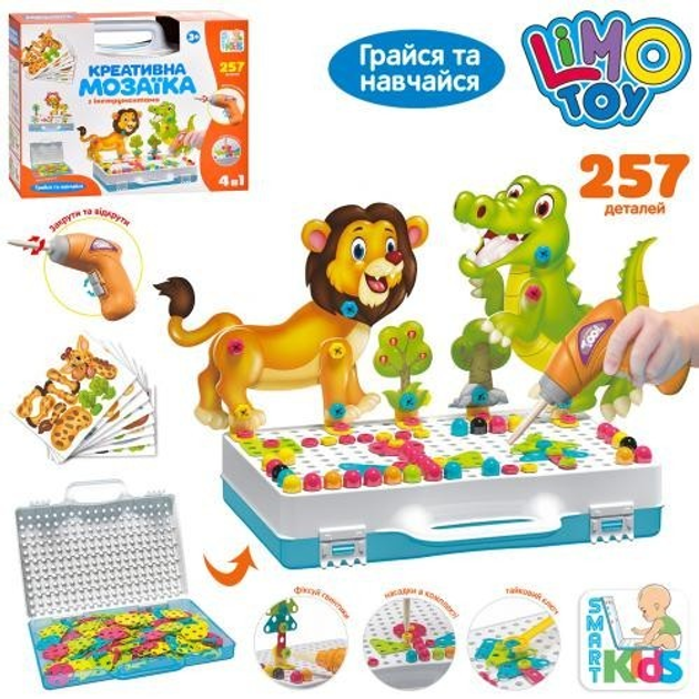 Гвинтова мозаїка з шуруповертом 4 в 1 Creative Puzzle розвиваючий набір для творчості для дітей 257 предметів 31х25х8.5см KL