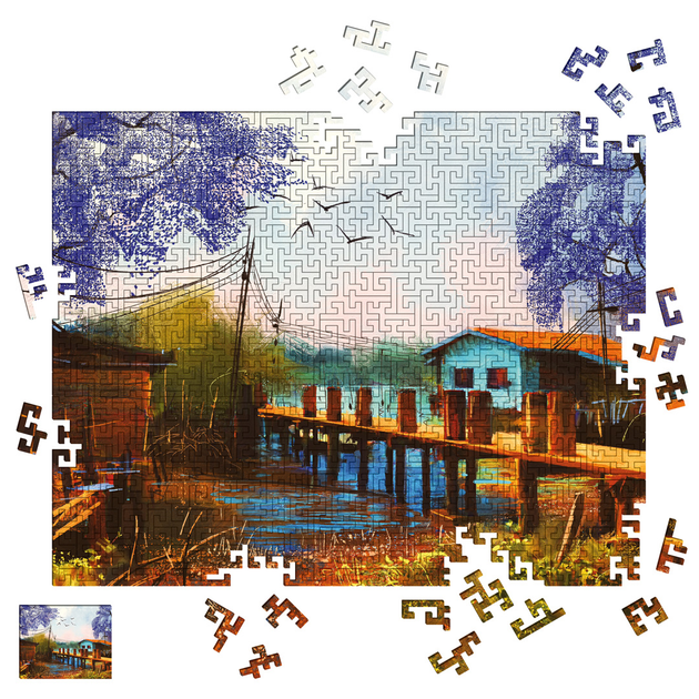 Деревяний Пазл-лабіринт Старе рибальське село The Wortex 30x40 см (PZL31012M)