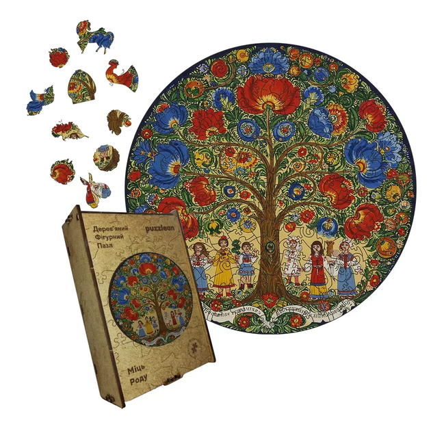 Дерев'яний фігурний пазл Декоративний Розпис Міць Роду, А1, Дерев'яна коробка 500+ елементів