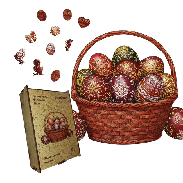 Дерев'яний фігурний пазл Пасхальний Кошик, А1, Дерев'яна коробка 500+ елементів