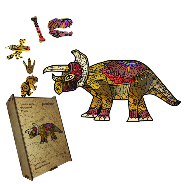 Пазл дерев'яний Динозавр Трицератопс, А1, Дерев'яна коробка 500+ елементів