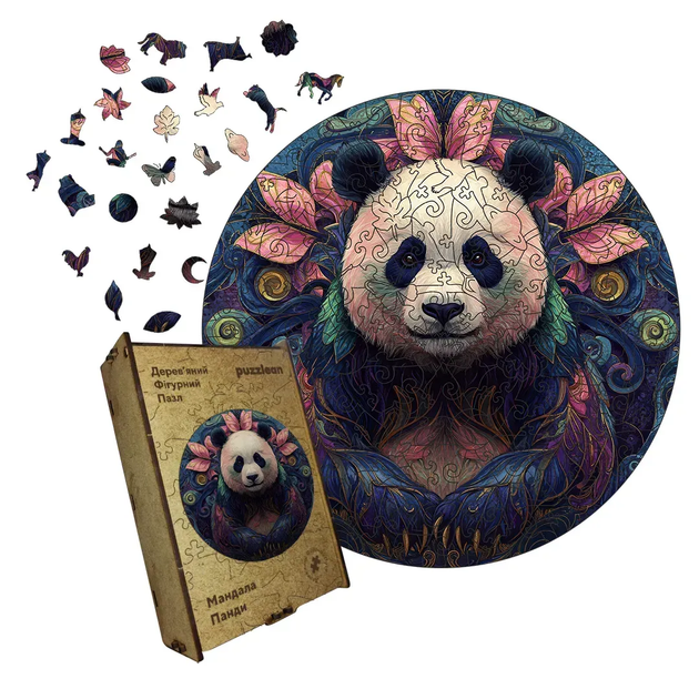 Дерев'яний фігурний пазл Мандала Панди, А1, Дерев'яна коробка 500+ елементів
