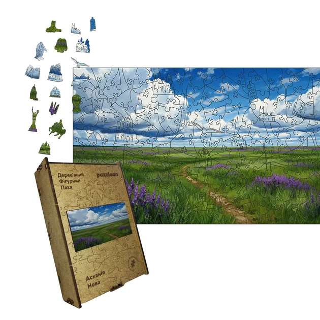 Дерев'яний фігурний пазл Асканія Нова, А1, Дерев'яна коробка 500+ елементів