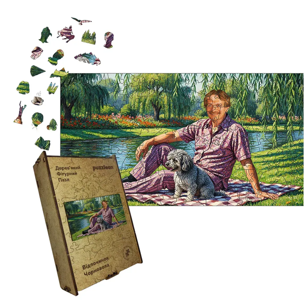 Дерев'яний фігурний пазл Відпочинок Чорновола, А1, Дерев'яна коробка 500+ елементів