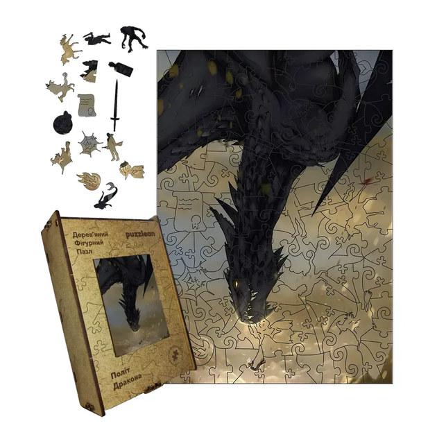 Дерев'яний фігурний пазл Політ Дракона, А1, Дерев'яна коробка 500+ елементів