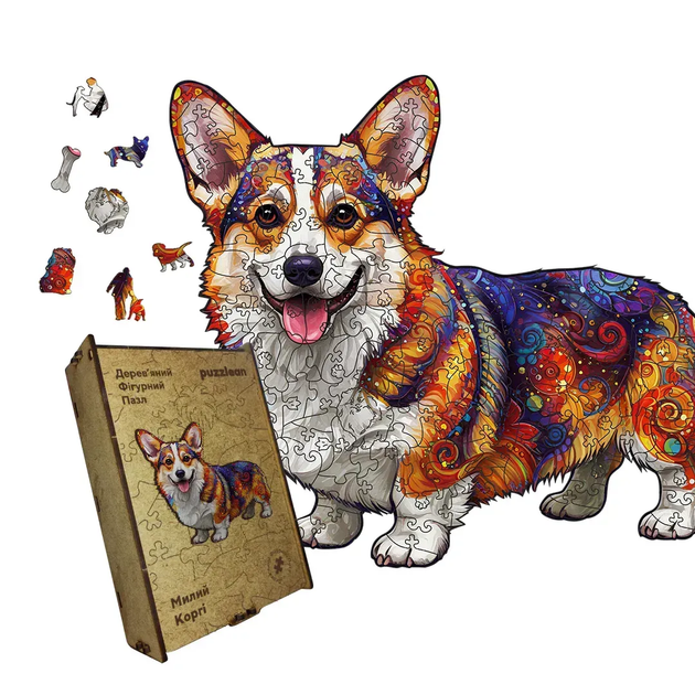 Дерев'яний фігурний пазл Милий Коргі, А1, Дерев'яна коробка 500+ елементів