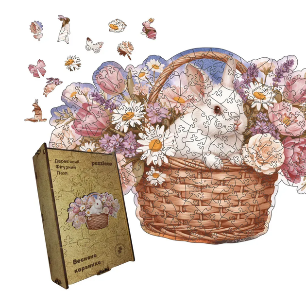 Дерев'яний фігурний пазл Весняна Корзинка, А1, Дерев'яна коробка 500+ елементів