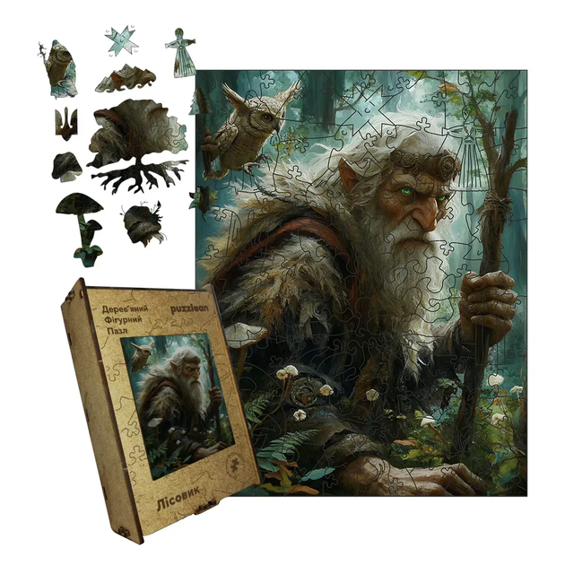 Дерев'яний фігурний пазл Лісовик, А1, Дерев'яна коробка 500+ елементів