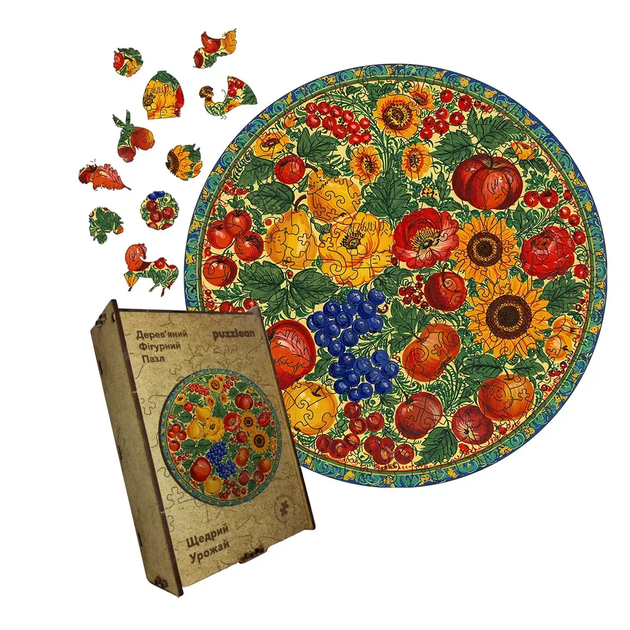 Дерев'яний фігурний пазл Декоративний Розпис Щедрий Врожай, А1, Дерев'яна коробка 500+ елементів