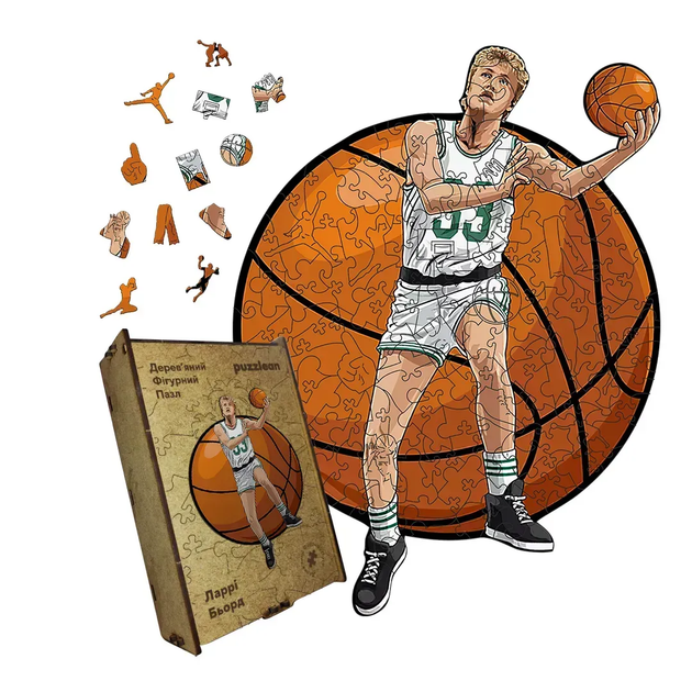 Дерев'яний фігурний пазл Ларрі Берд, А1, Дерев'яна коробка 500+ елементів