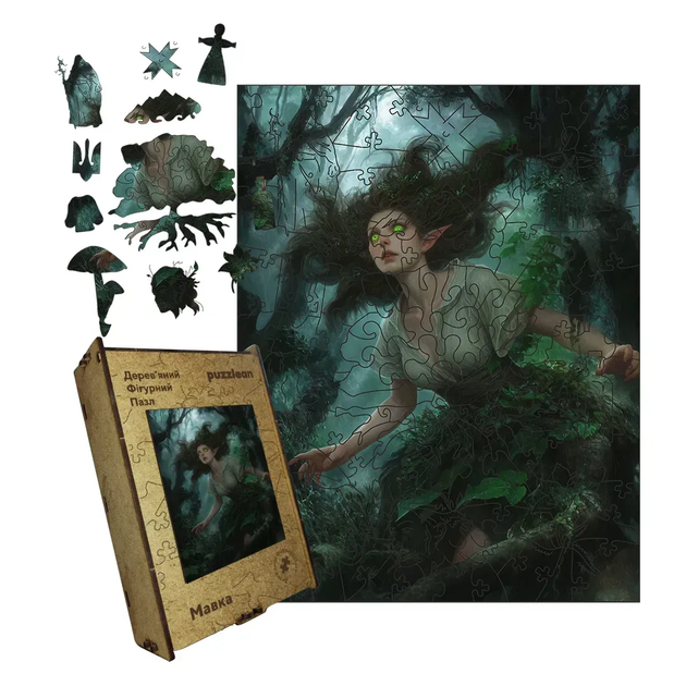 Дерев'яний фігурний пазл Мавка, А1, Дерев'яна коробка 500+ елементів