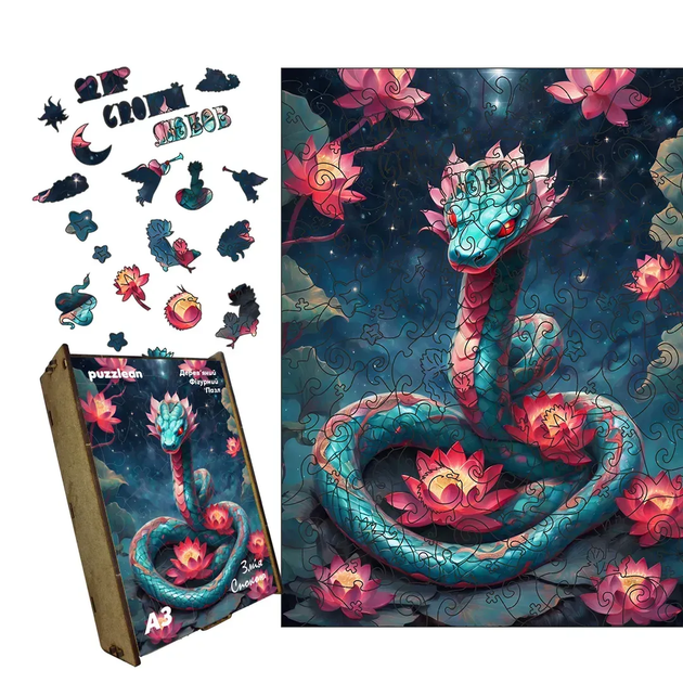 Пазл дерев'яний Змія Спокою, А1, Дерев'яна коробка 500+ елементів