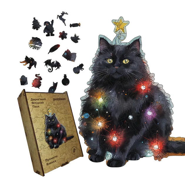 Дерев'яний фігурний пазл Пухнаста Ялинка, А1, Дерев'яна коробка 500+ елементів