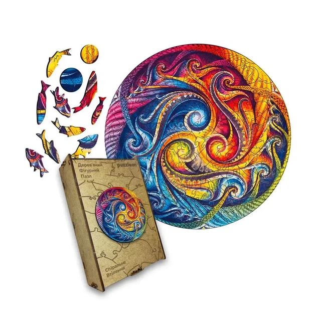 Дерев'яний фігурний пазл Мандала Спіральне Втілення, А1, Дерев'яна коробка 500+ елементів