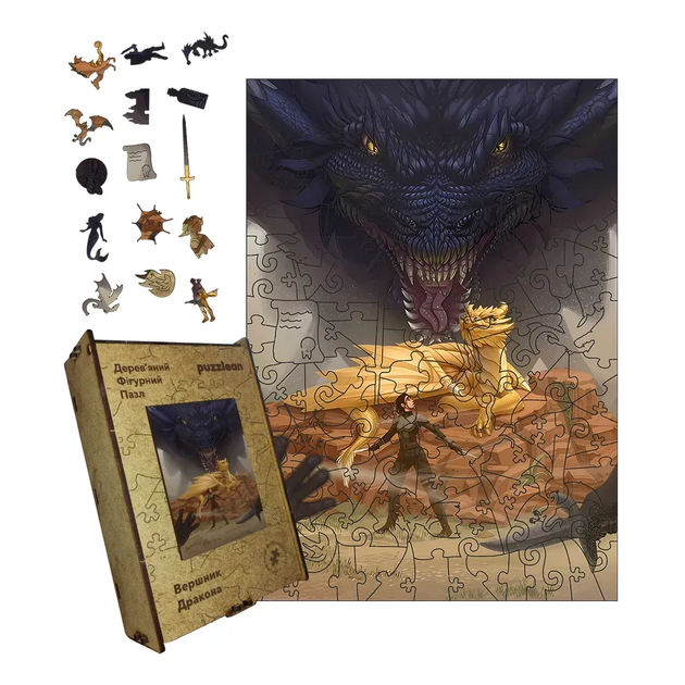 Дерев'яний фігурний пазл Вершник Дракона, А1, Дерев'яна коробка 500+ елементів