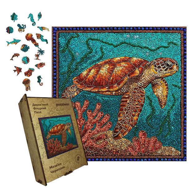 Дерев'яний фігурний пазл Мозаїка Черепахи, А1, Дерев'яна коробка 500+ елементів