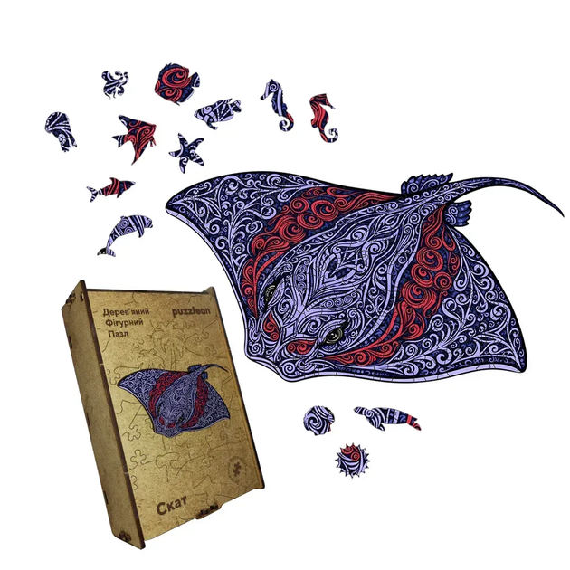 Дерев'яний фігурний пазл Колоритний Скат, А1, Дерев'яна коробка 500+ елементів