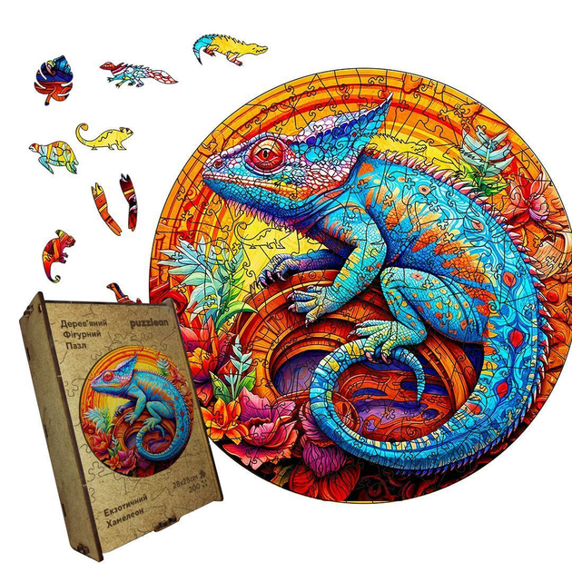 Пазл дерев'яний Екзотичний Хамелеон, А1, 500+ елементів, Дерев’яна коробка