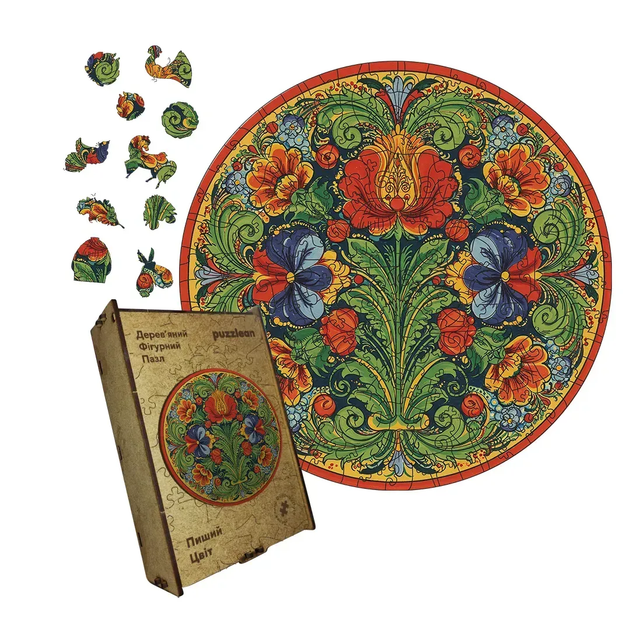 Дерев'яний фігурний пазл Декоративний Розпис Пишний Цвіт, А1, Дерев'яна коробка 500+ елементів