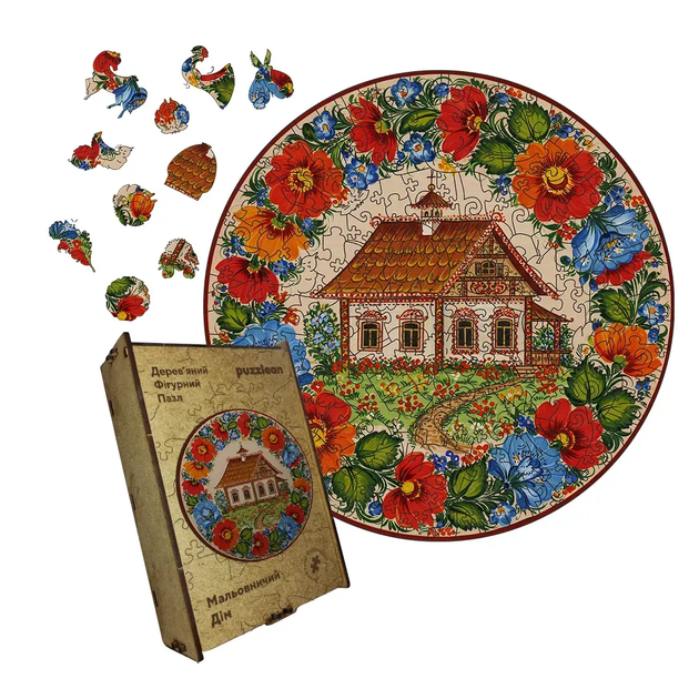Дерев'яний фігурний пазл Декоративний Розпис Мальовничий Дім, А1, Дерев'яна коробка 500+ елементів