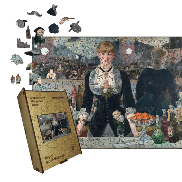 Дерев'яний фігурний пазл Бар «Фолі-Бержер», А1, Дерев'яна коробка 500+ елементів