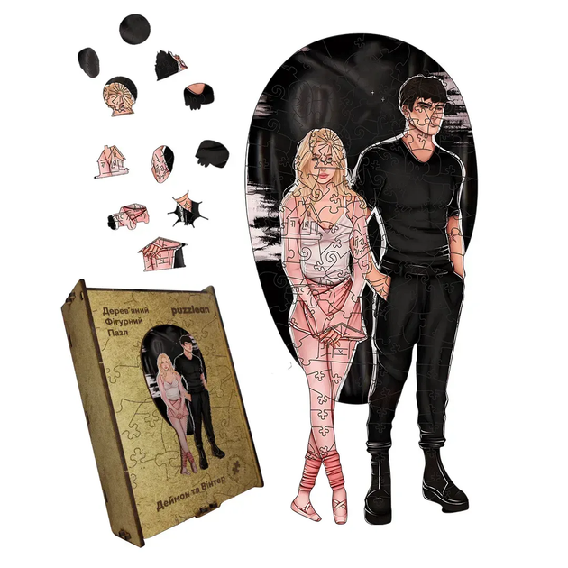 Дерев'яний фігурний пазл Деймон та Вінтер, А1, Дерев'яна коробка 500+ елементів